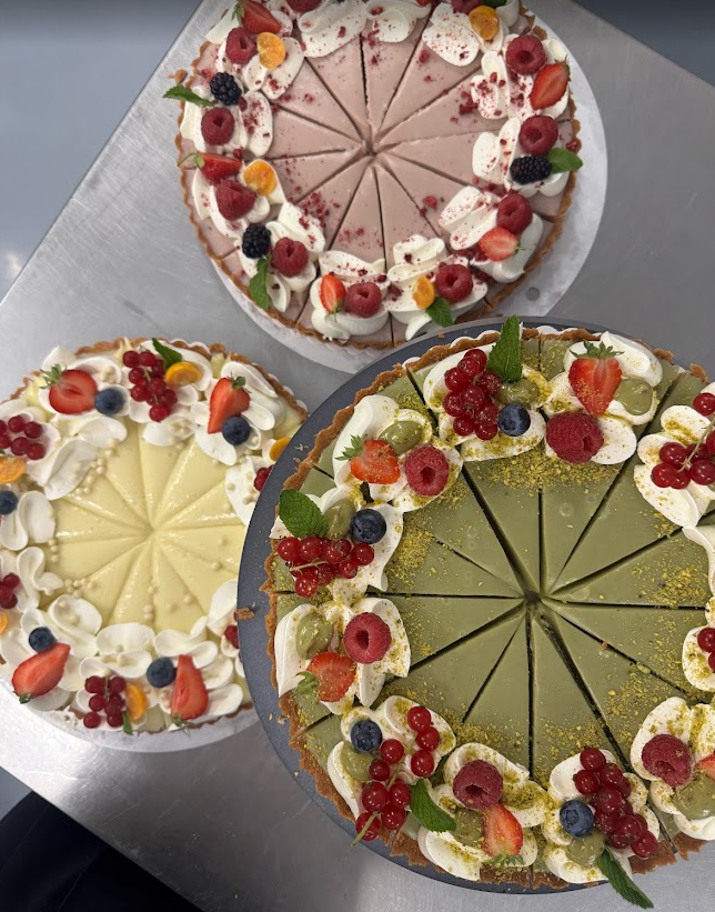 Wir freuen uns euch ein neues Produkt vorzustellen – unsere leckeren Schokoladen Tartes. Der knusprige Gebäckboden bildet die perfekte Basis für diese Tarte. Er ist hauchdünn und leicht buttrig, um den perfekten Kontrast zur cremigen Pistazien Schokoladen Füllung zu bieten. Jeder Bissen fühlt sich an wie ein Tanz auf der Zunge, bei dem die unterschiedlichen Texturen und Aromen miteinander verschmelzen. Dekoriert wird er mit Saisonellen Früchten.