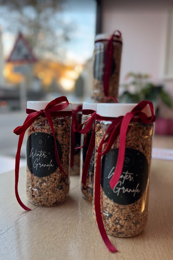 Dieses handgemachte Weihnachts-Granola bringt Wärme, Duft und Genuss in die Adventszeit. Mit viel Liebe im Ofen veredelt, vereint es knusprige Haferflocken, aromatisches Lebkuchengewürz und fruchtig-säuerliche Cranberries zu einem winterlichen Mix, der jedes Frühstück zu etwas Besonderem macht.